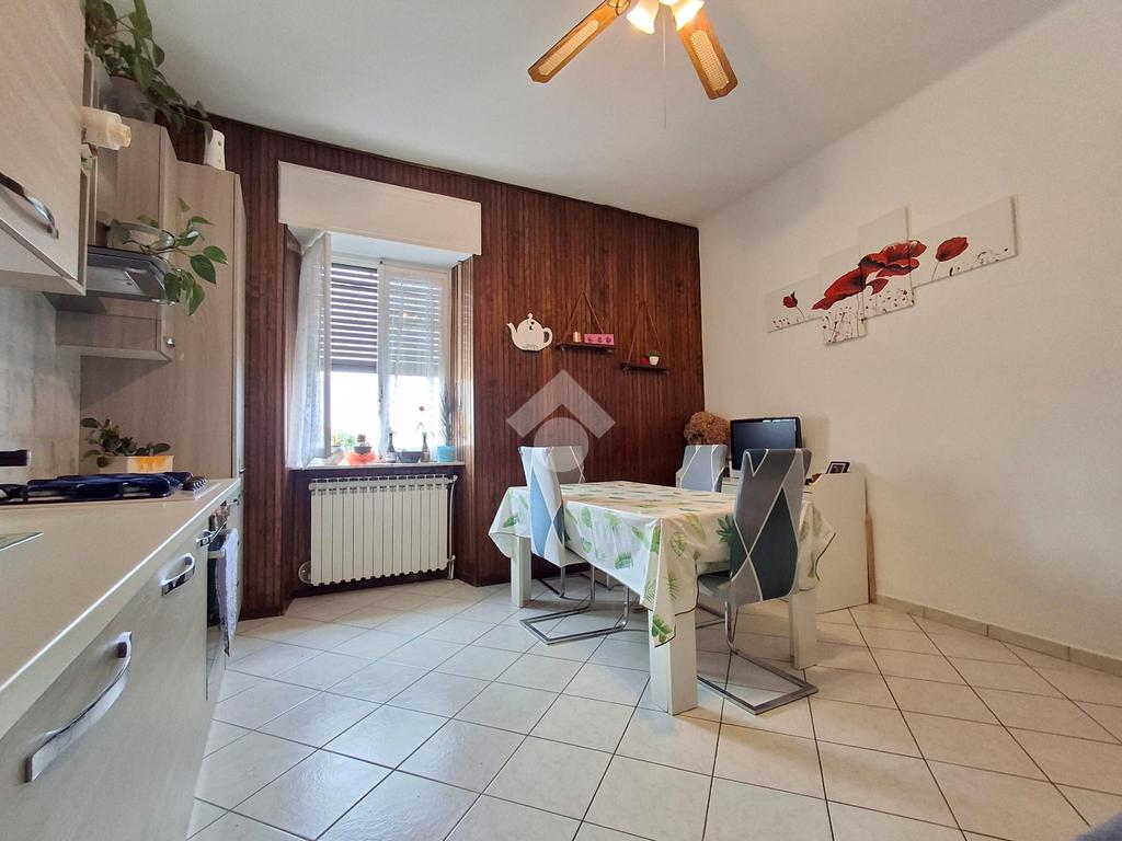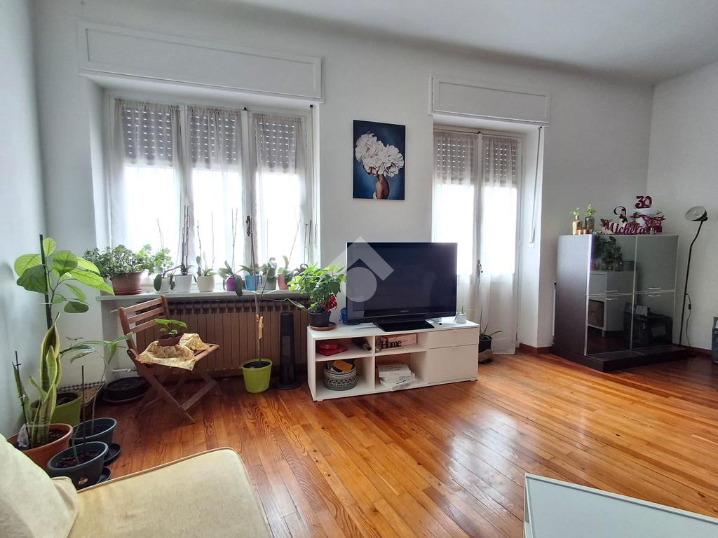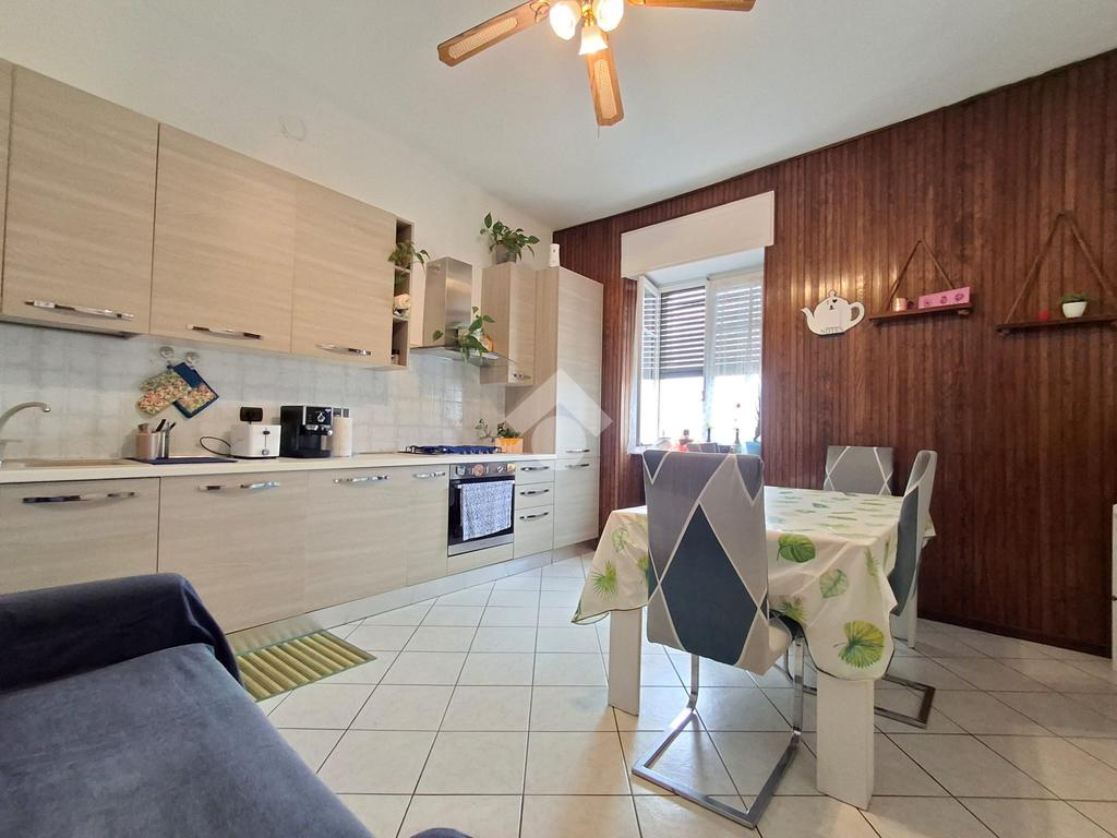 In zona centrale con affaccio sulla piazza principale e sul parco Tassone, alloggio senza spese condominiali comodo a tutti i principali negozi, ai mezzi di trasporto e ai pubblici uffici.